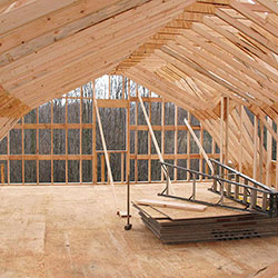 In November 2011 we featured the great looking (and very well built) 28x40 Garage/Shop of Larry & Denise Hodson in Aurora, OH. This truly is a "Barn for all Seasons" as you'll see. Larry works at home and complained about having his office in an extra bedroom in the house. So when it came time to build he added a 12' enclosed Shed Roof running the length of the barn for a really cool new office! Larry sent us a whole slew of good photos of the project and even included a personal narrative, so let's get to it!
